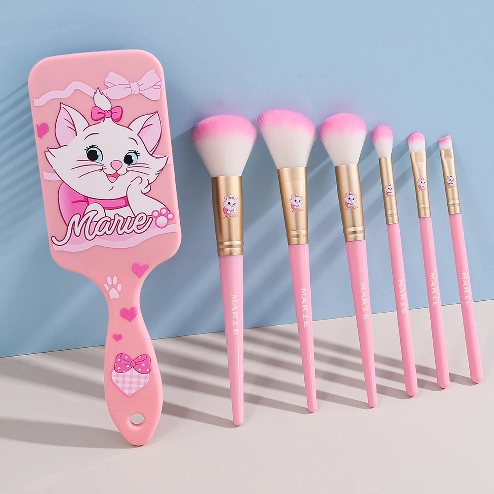 Coffret de pinceaux maquillage Mary Cat en style cartoon, adorables accessoires de maquillage créatifs pour le visage, idéal comme cadeau d’anniversaire ou de fête pour les petites filles.