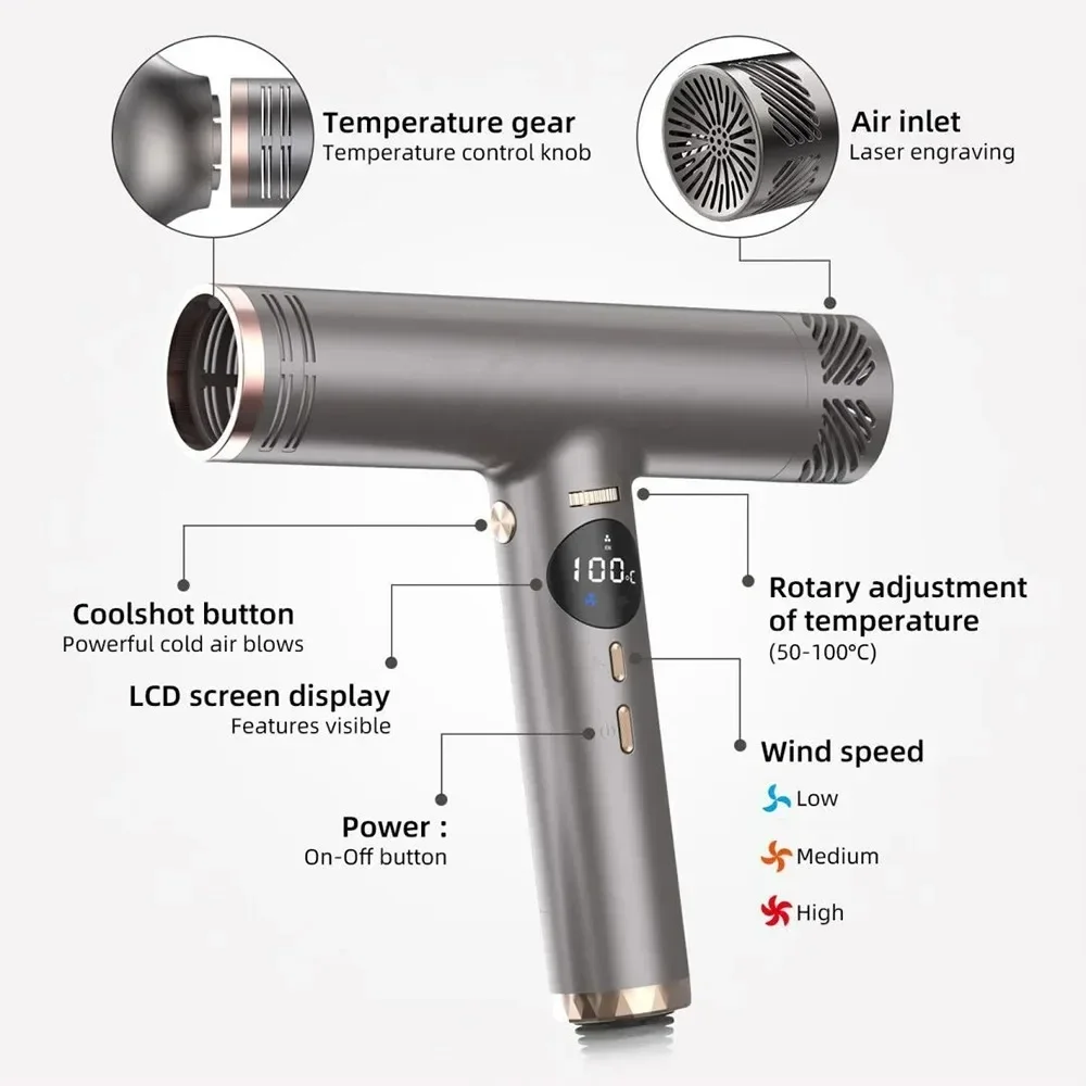 Peculiarity: Professional Hair Dryer,Blow Dryer,10000RPM Powerful Wind,Dual Air Temperature Control,Styling Tools,Hair Salon,Negative Ions,High Speed,LCD Display