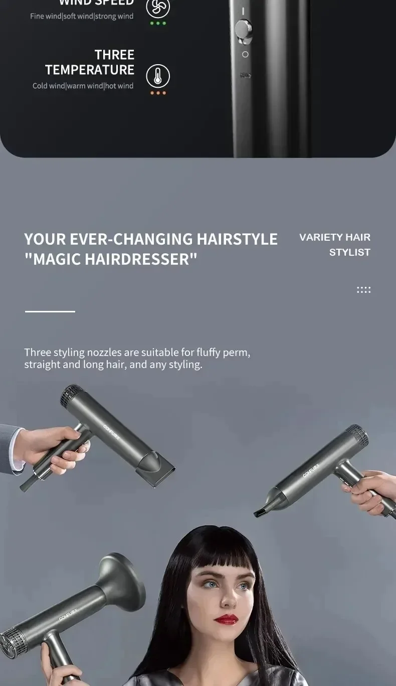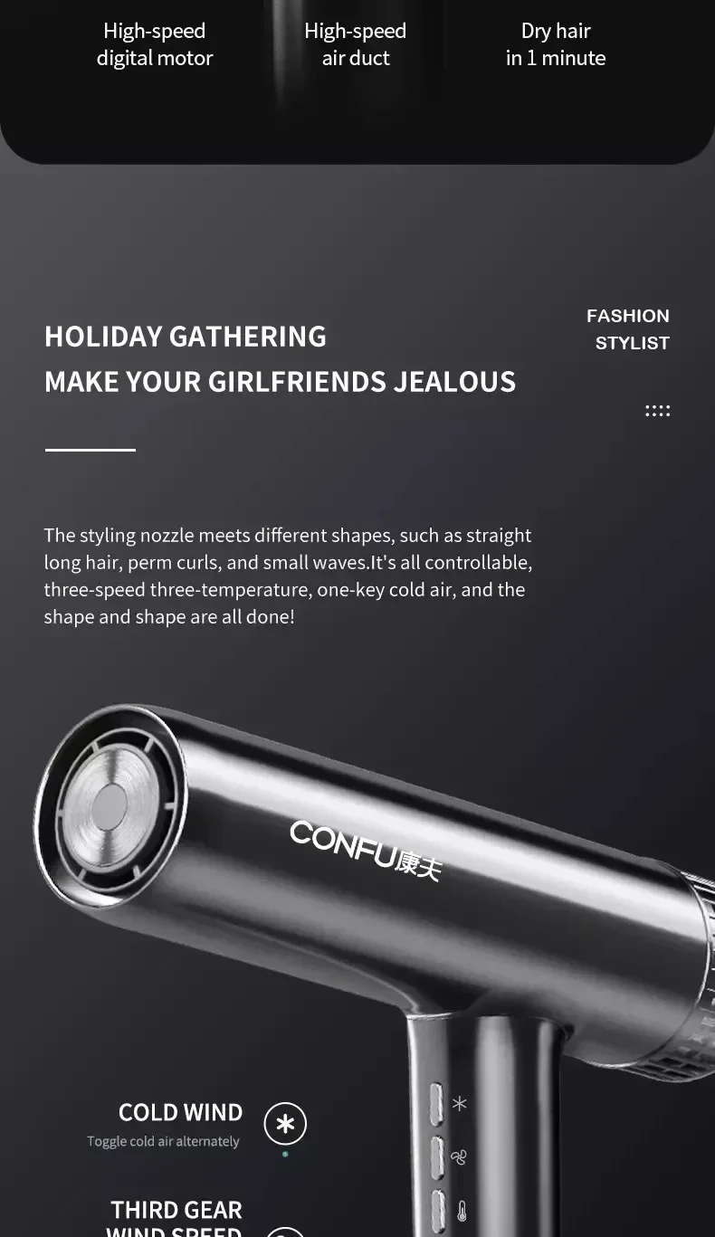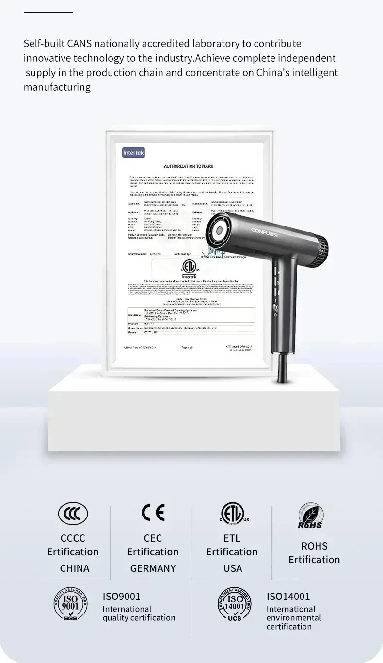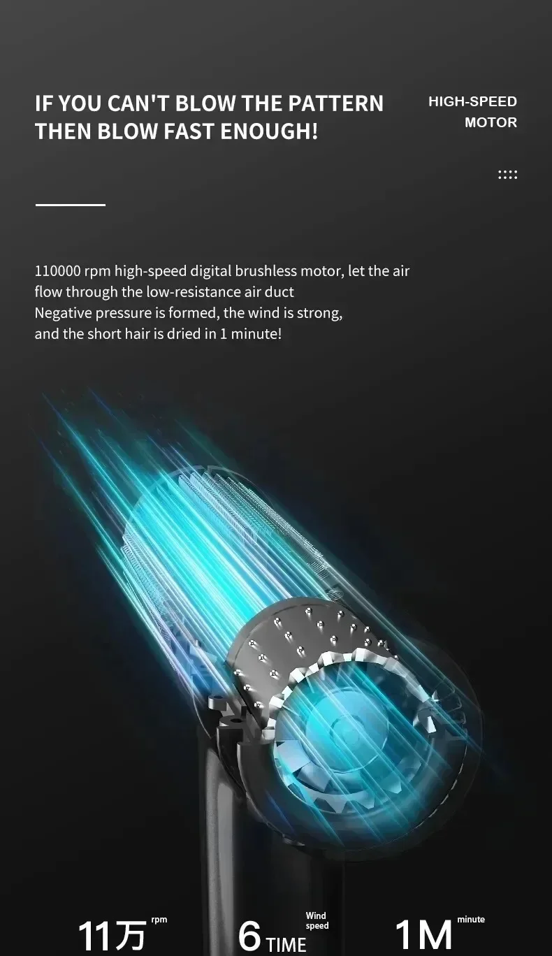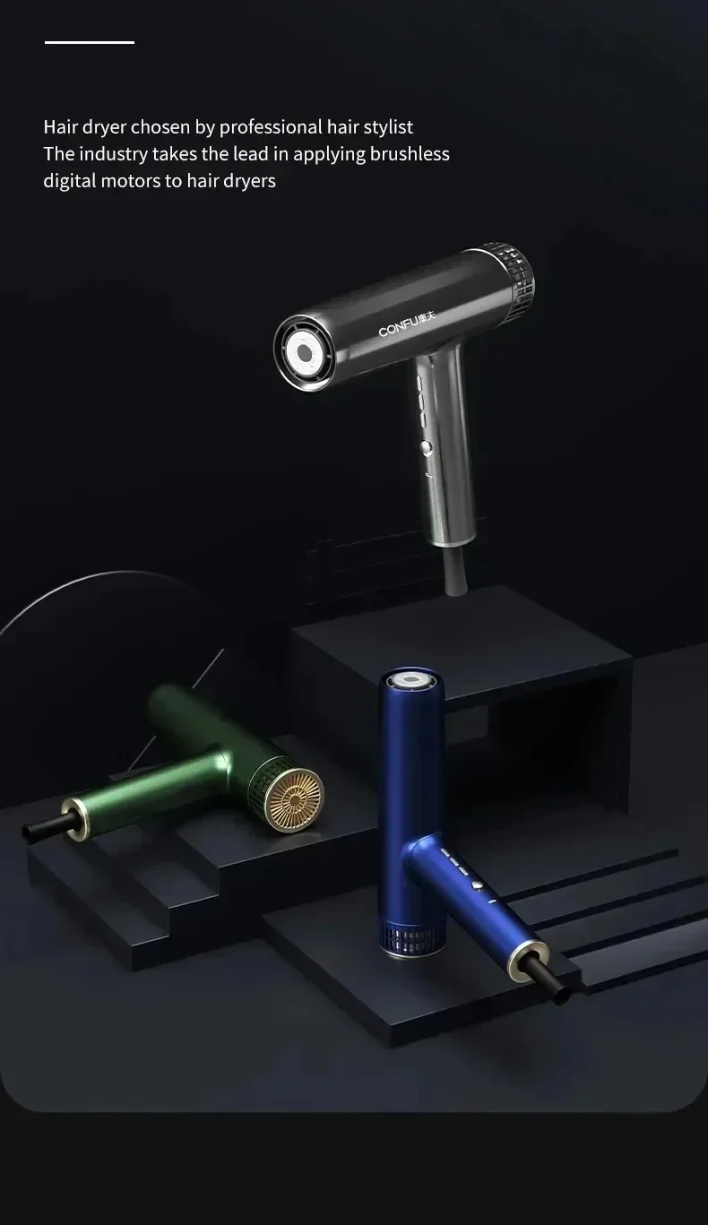 Sèche-cheveux professionnel à haute vitesse — souffle puissant, ions négatifs, séchage rapide idéal pour salons et soins capillaires.