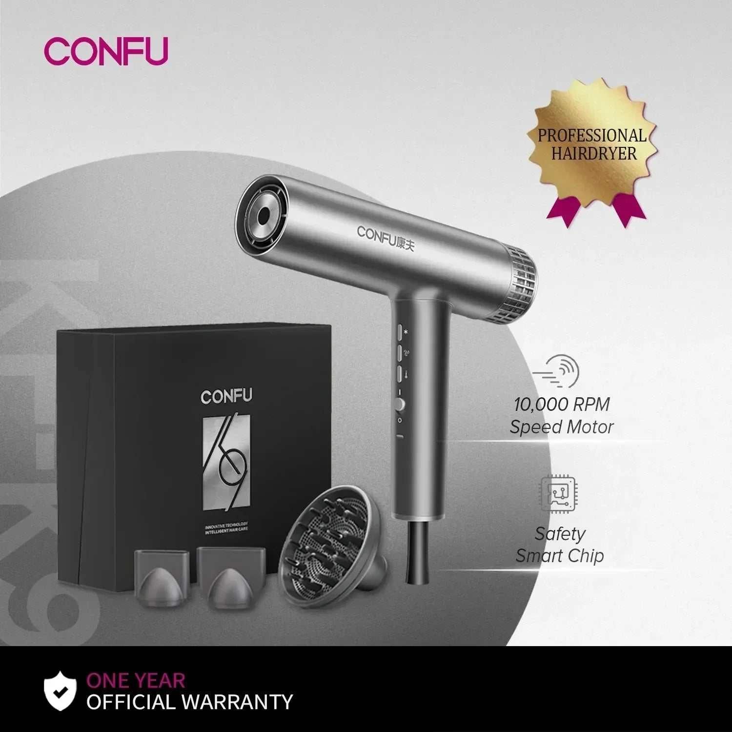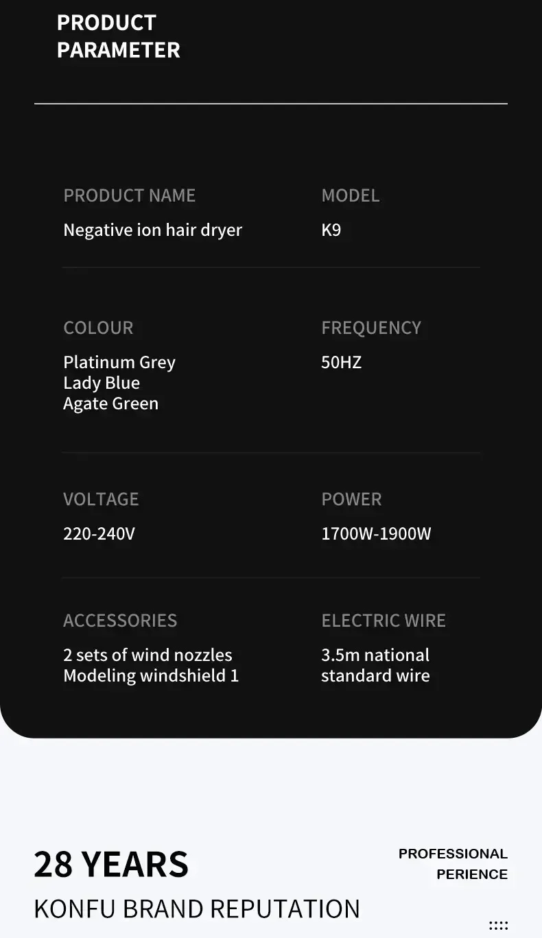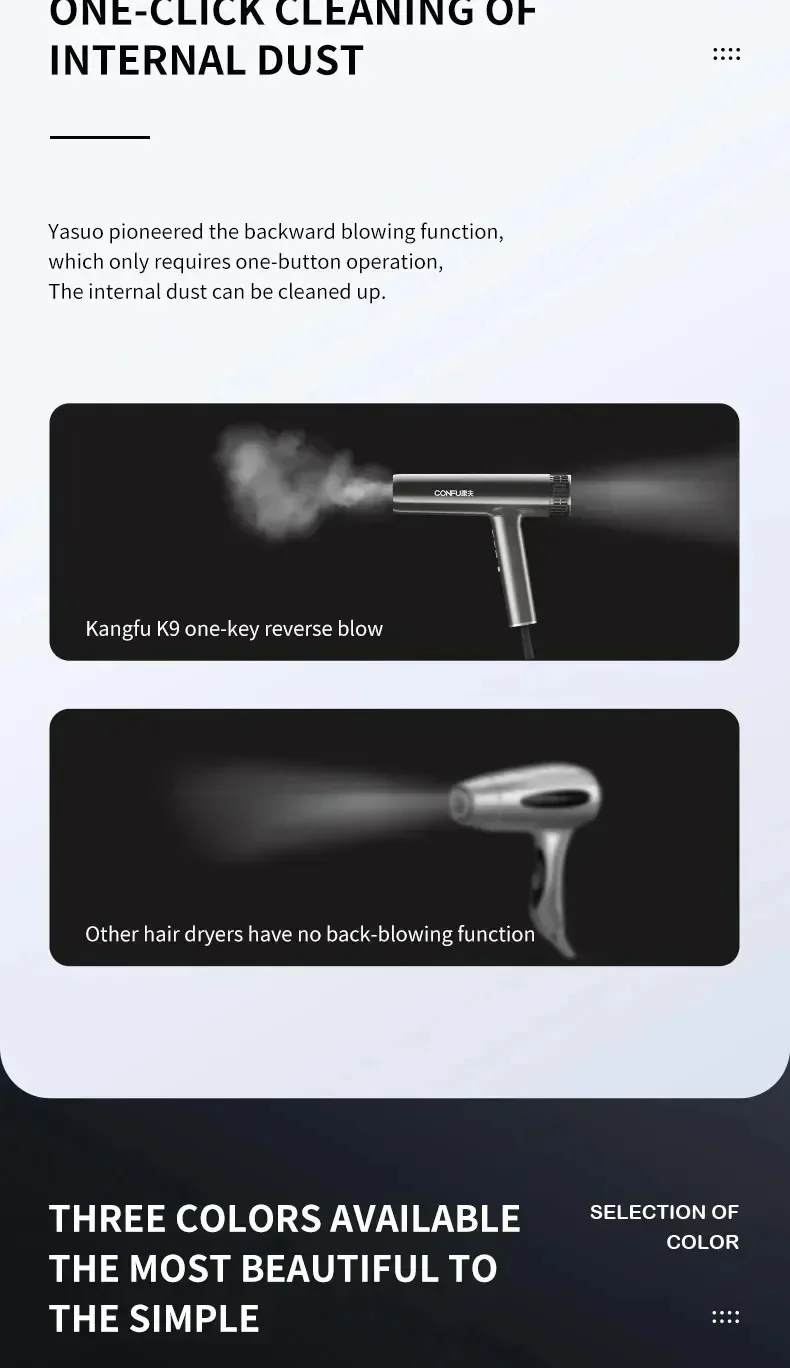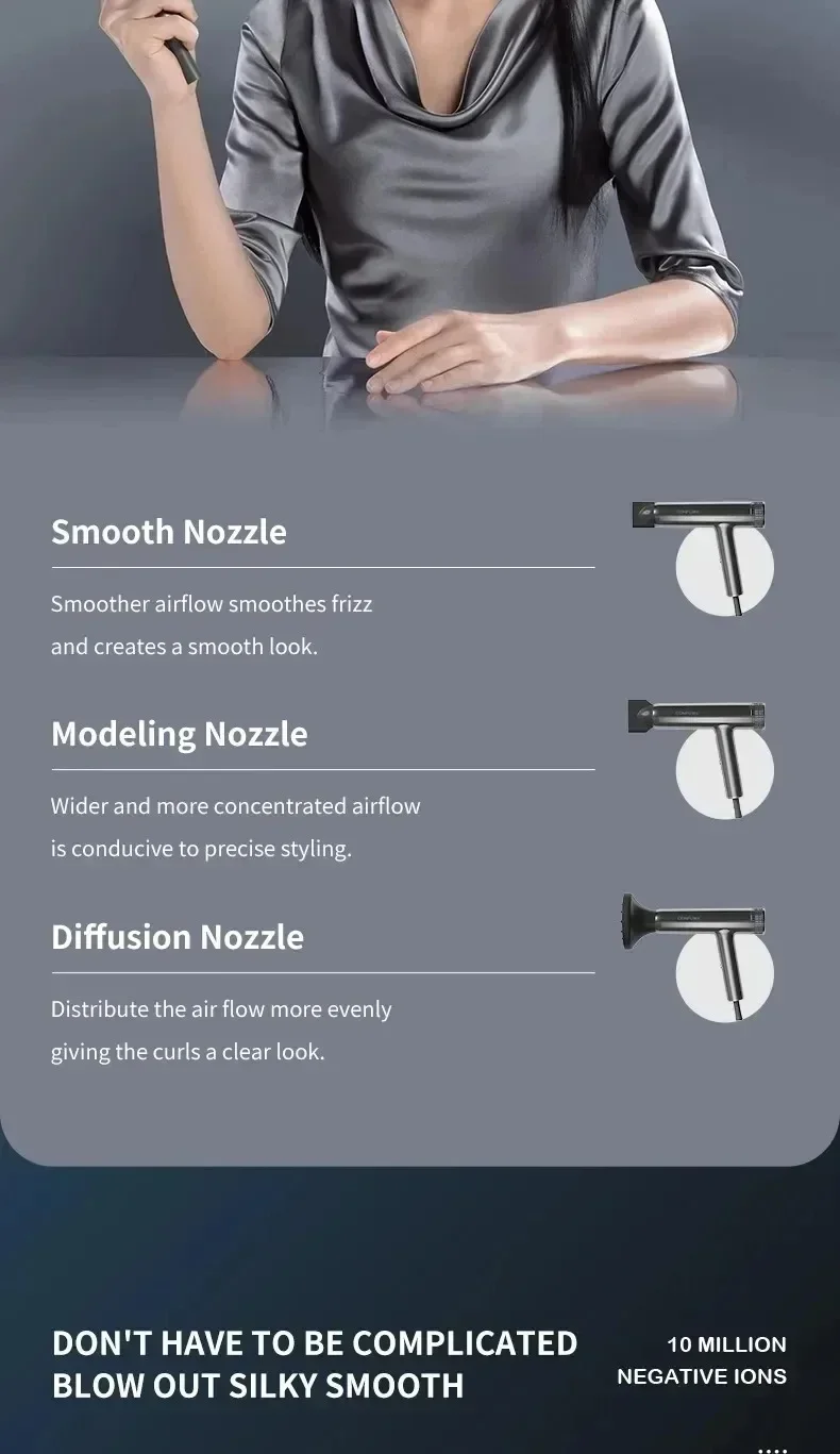 Sèche-cheveux professionnel à haute vitesse — souffle puissant, ions négatifs, séchage rapide idéal pour salons et soins capillaires.