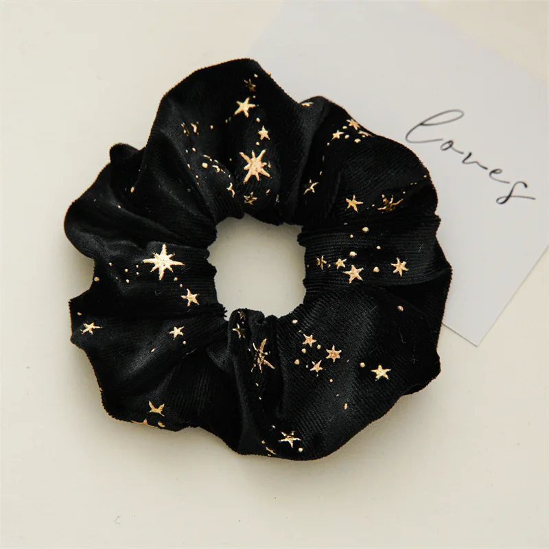 Chouchous en velours YHJ avec étoiles ✨ – Élastiques pour cheveux femme et fille, bandeaux élégants pour queue de cheval, accessoire de mode hiver.